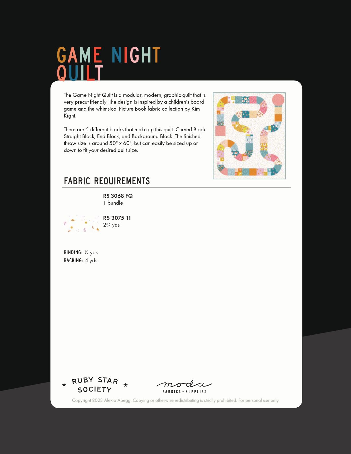 Get a copy of the free Game Night Quilt Pattern from Ruby Star Society.